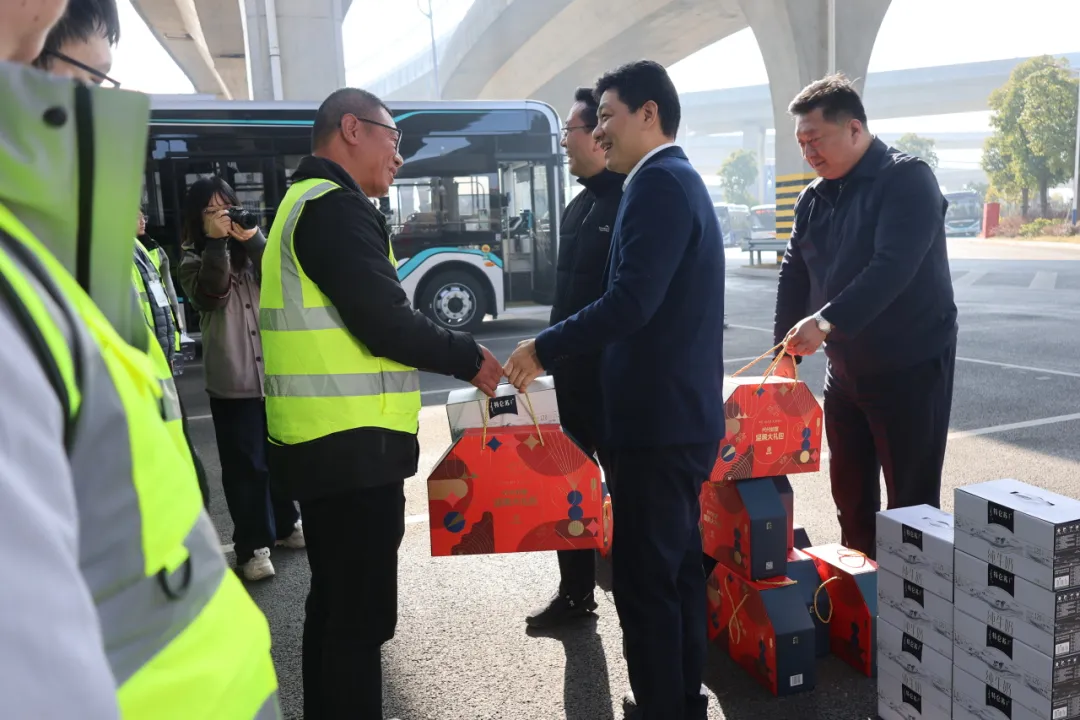 安全檢查結束后,領導們紛紛為一線員工送上新春慰問品,向他們致以最誠摯的節(jié)日問候和崇高敬意。在各個一線場所,無論是生產作業(yè)的核心區(qū)域,還是服務群眾的前沿窗口,亦或是保障運轉的關鍵崗位,領導們與員工親切交談,將慰問品送到大家手中,關心他們的工作情況,肯定他們在春節(jié)期間堅守崗位為群眾提供服務的奉獻精神。一句句貼心的話語,一份份溫暖的慰問,讓堅守在一線的員工們深受感動。員工們表示,將不辜負領導的期望,堅守崗位,以更為飽滿的熱情、更為嚴謹的態(tài)度,全身心投入到各項工作之中,全力以赴確保春節(jié)期間的安全與穩(wěn)定。