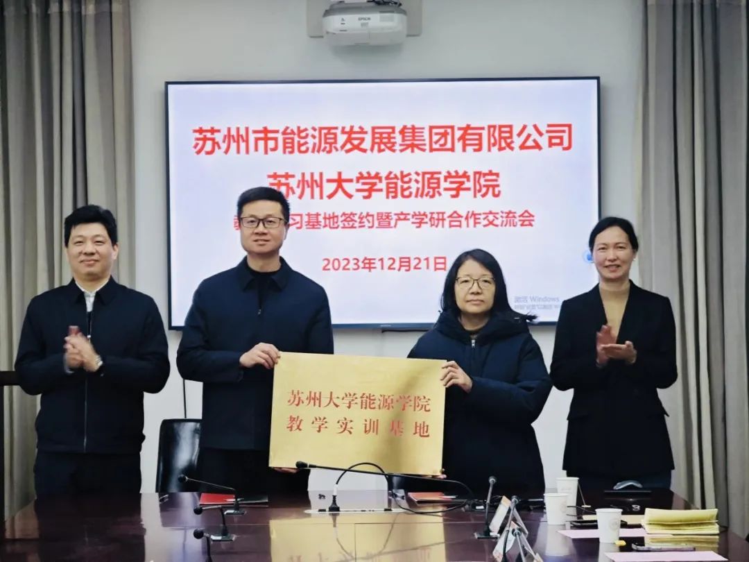 12月21日,蘇州能源集團與蘇州大學能源學院舉行教學實習基地簽約暨產(chǎn)學研合作交流會。集團黨委書記、董事長王晨與蘇州大學能源學院黨委書記沙丹丹見證簽約并座談交流。