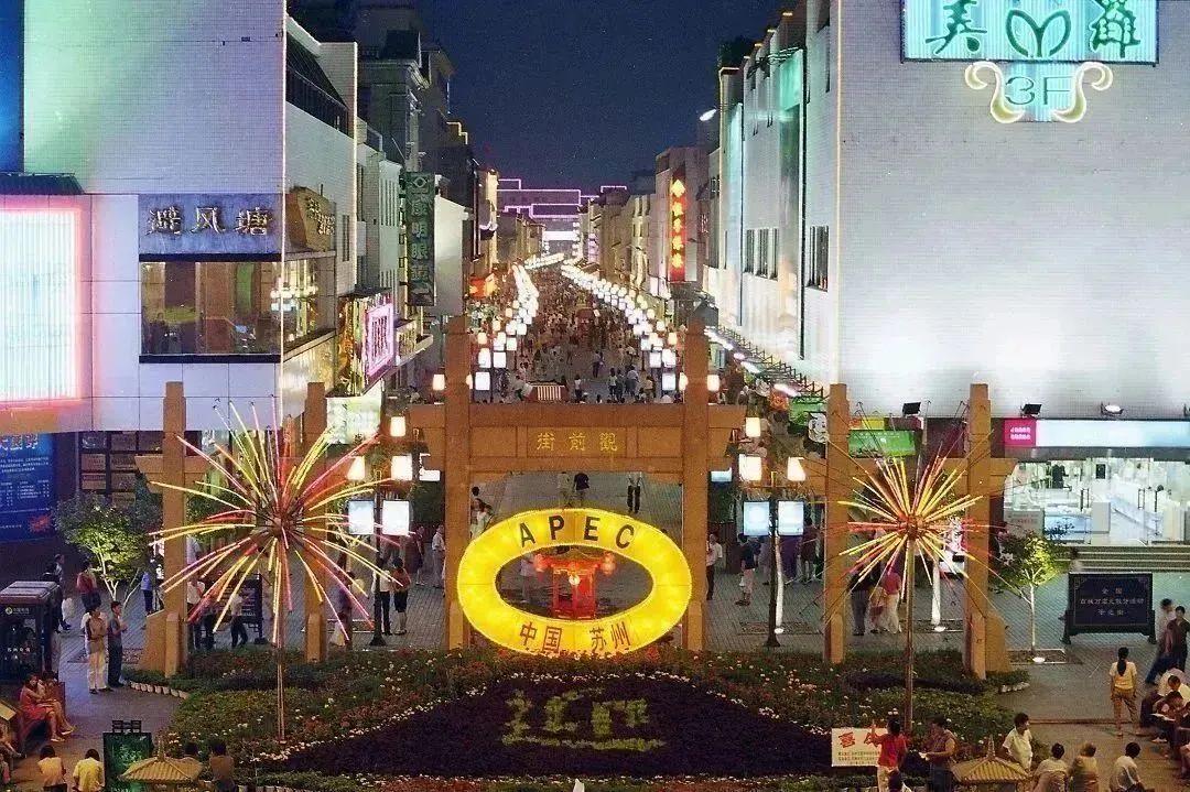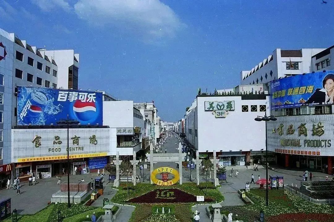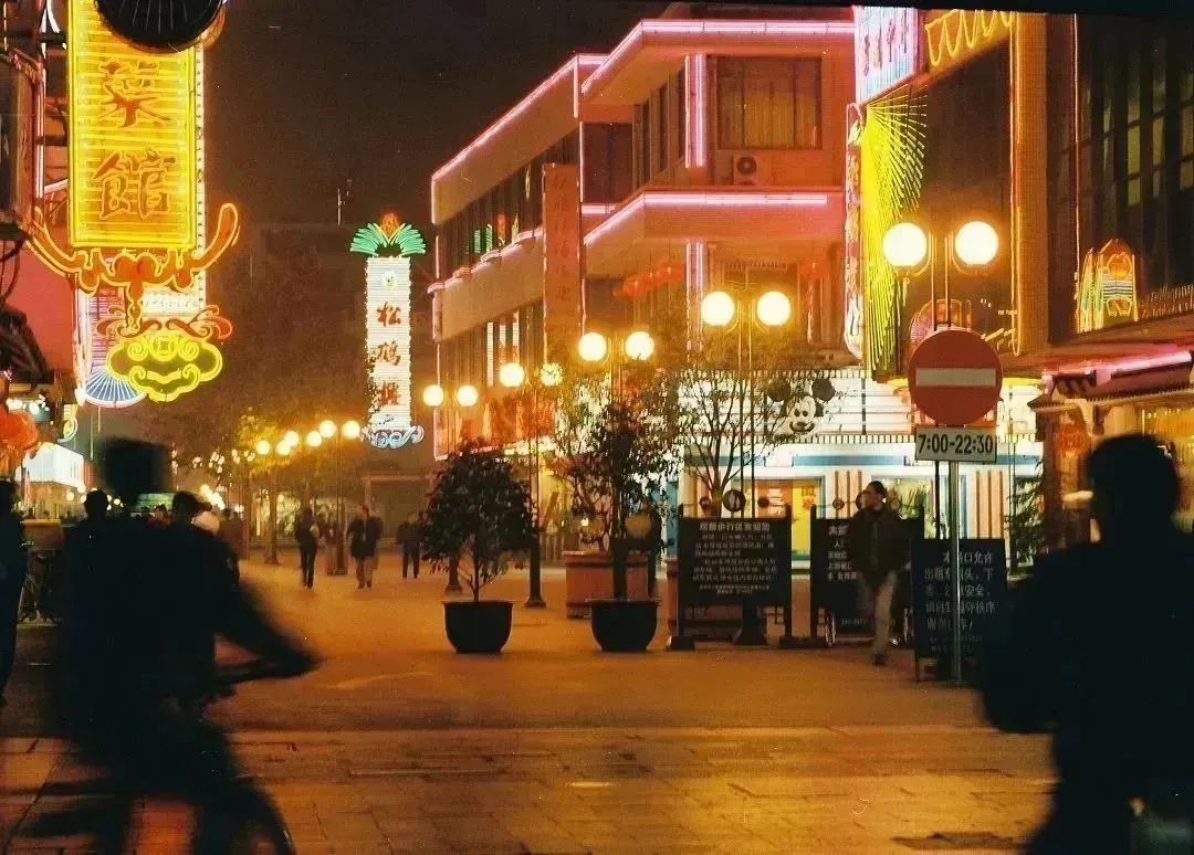 90年代的觀前街遠(yuǎn)不及現(xiàn)在繁華,但依舊熱鬧,西頭的“門面”還是工業(yè)品商場(chǎng)和食品商場(chǎng)。到了90年代末期,路燈從水泥柱抱箍燈改成了金屬桿金鹵燈,美羅時(shí)裝城聲勢(shì)浩大地開了起來(lái),太監(jiān)弄里霓虹燈牌閃爍,宛如另一條“黃河路”。