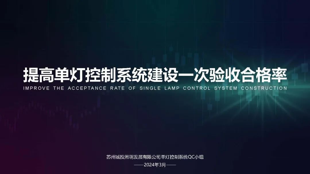3月21日,2024年度蘇州市市政工程建設優(yōu)秀QC小組活動成果發(fā)布會順利舉行,能源集團子公司照明公司參加發(fā)布會儀式。設施運維部高級項目經(jīng)理吳楊通過PPT匯報“提高單燈控制系統(tǒng)建設一次驗收合格率”,以清晰準確的邏輯流程,適宜正確的統(tǒng)計方法,在發(fā)布會上脫穎而出,最終“城投照明單燈控制系統(tǒng)QC小組”以81.27分斬獲2024年蘇州市政工程建設優(yōu)秀質量管理小組二等獎,創(chuàng)歷史最好成績。
