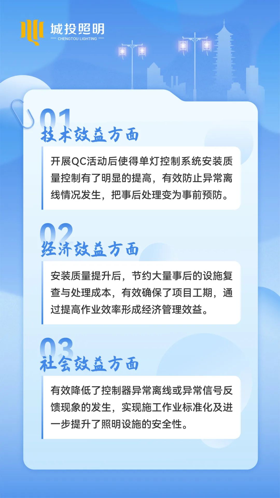 照明公司將以QC小組活動為抓手,協(xié)同創(chuàng)新機制,繼續(xù)秉持“優(yōu)質工程”的原則,不斷創(chuàng)新,持續(xù)提升企業(yè)品牌形象和市場競爭力,將全面質量管理融入到施工全過程。