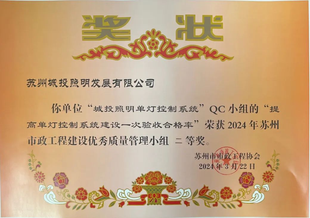 提質增效|照明公司獲得2024年度蘇州市政工程建設優(yōu)秀QC小組二等獎
