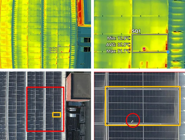傳統(tǒng)的運(yùn)維管理方法依靠專業(yè)人員巡檢和定期維護(hù),存在著成本高、效率低、安全風(fēng)險(xiǎn)大等問題。吳都能源以科技賦能場站管理,利用無人機(jī)熱成像技術(shù)為所持有光伏電站開展日常巡檢和維護(hù)。除實(shí)現(xiàn)光伏組件灰塵覆蓋、表面破損、硅片碎裂、隱裂等故障引起的熱異常情況診斷和精確定位外,經(jīng)統(tǒng)計(jì),整體工作量相較于人工巡檢降低80%。無人機(jī)補(bǔ)充高空點(diǎn)位,讓整體巡視覆蓋點(diǎn)位數(shù)量提升60%。同時(shí)也大幅減少安裝攝像頭的數(shù)量,讓智能運(yùn)維投入成本降低,真正做到“取代人工,降本增效”。