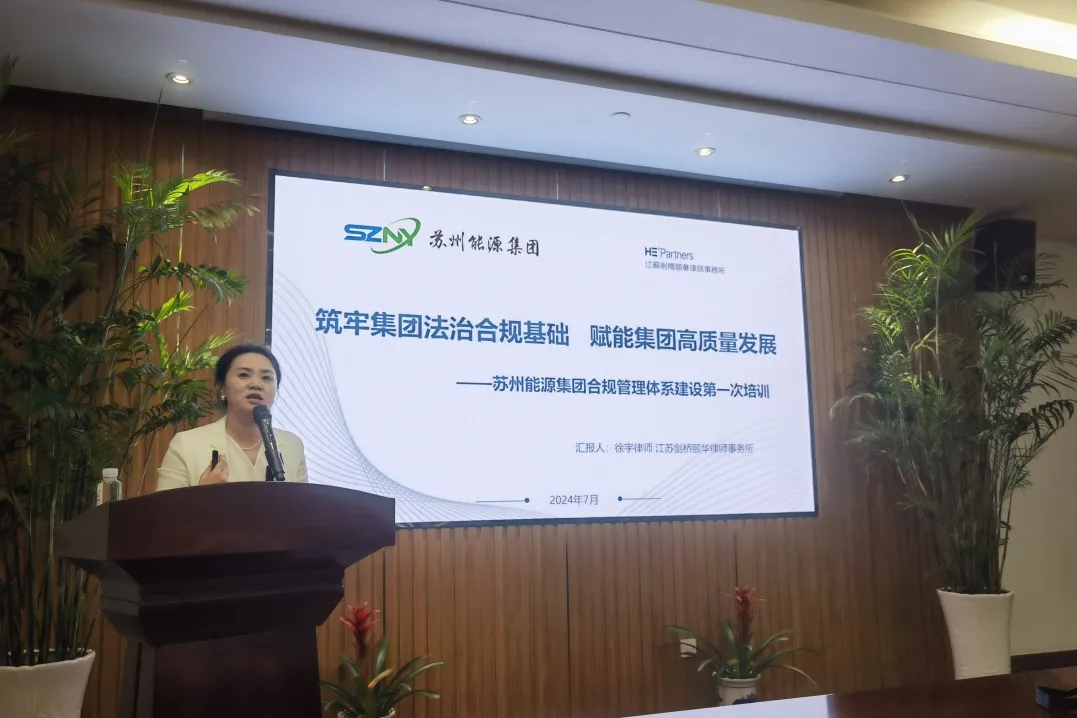 隨后,來自江蘇劍橋頤華律師事務(wù)所徐宇律師進(jìn)行了合規(guī)體系專題分享。徐律師主要介紹了國企合規(guī)管理體系建設(shè)的概念、發(fā)展史、內(nèi)容和宗旨,并初步規(guī)劃了能源集團(tuán)合規(guī)體系建設(shè)工作的時間安排,以及將來的目標(biāo)成果。