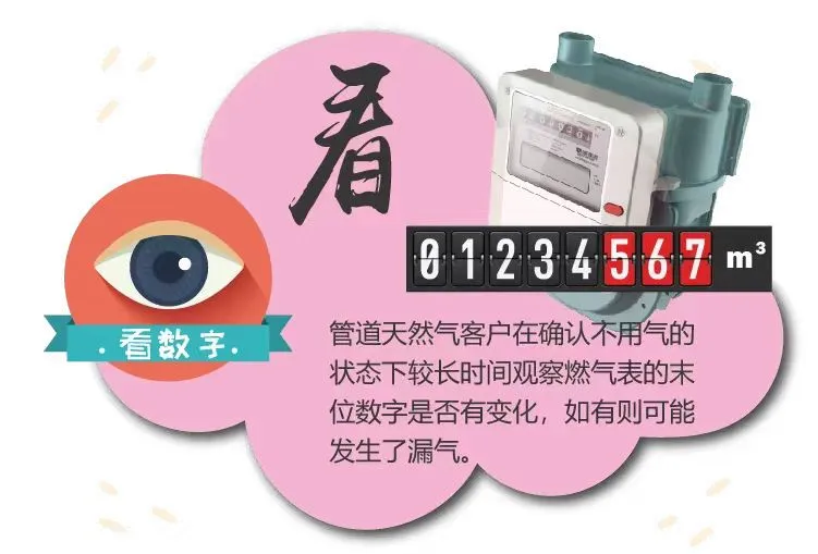 在不用氣的情況下,如果氣表的末位紅框內(nèi)數(shù)字走動(dòng),也可以判斷為燃?xì)庑孤?/p>