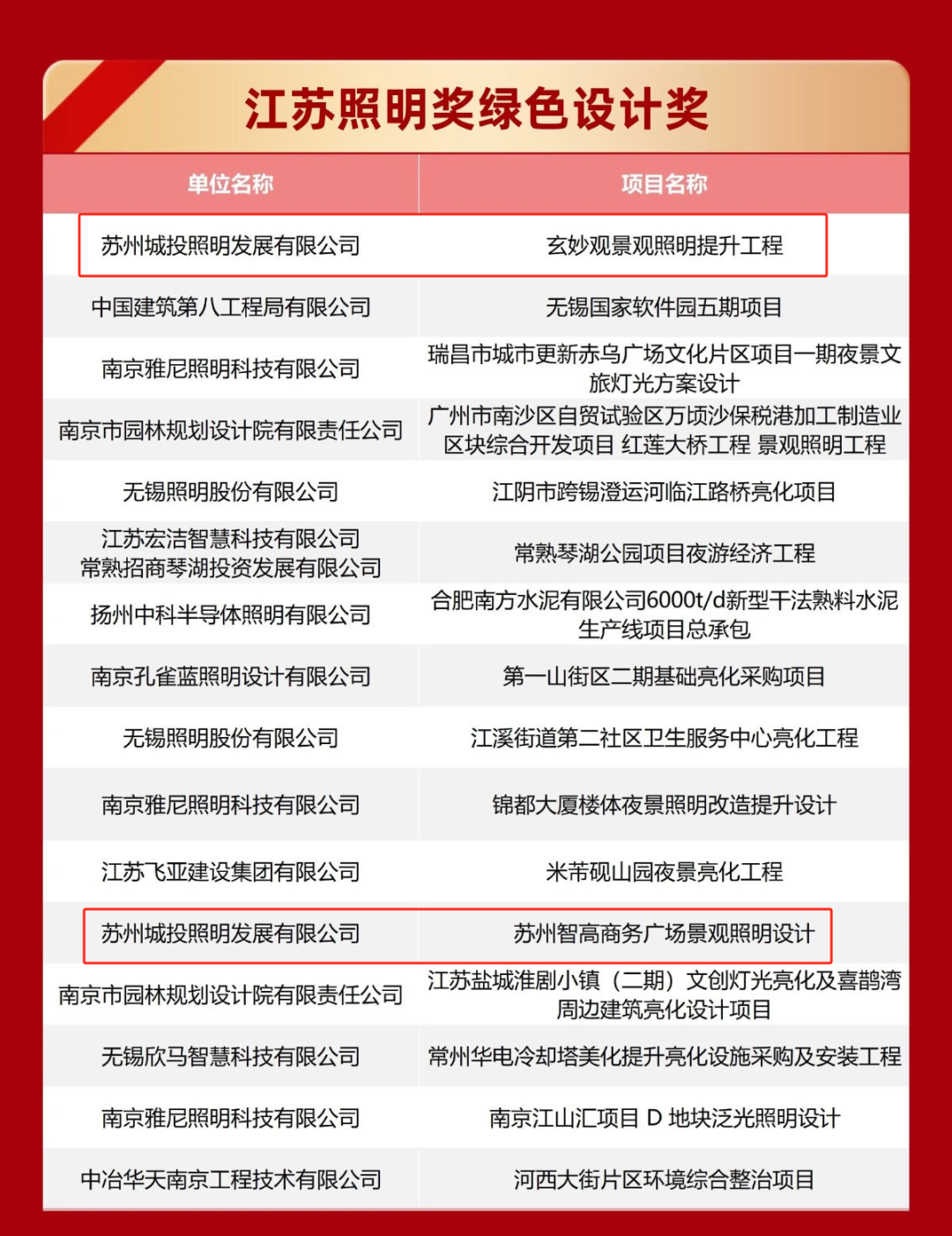 【子公司動態(tài)】創(chuàng)新引領(lǐng) 綠色照明丨蘇州城投照明發(fā)展有限公司榮獲江蘇照明獎綠色設(shè)計獎