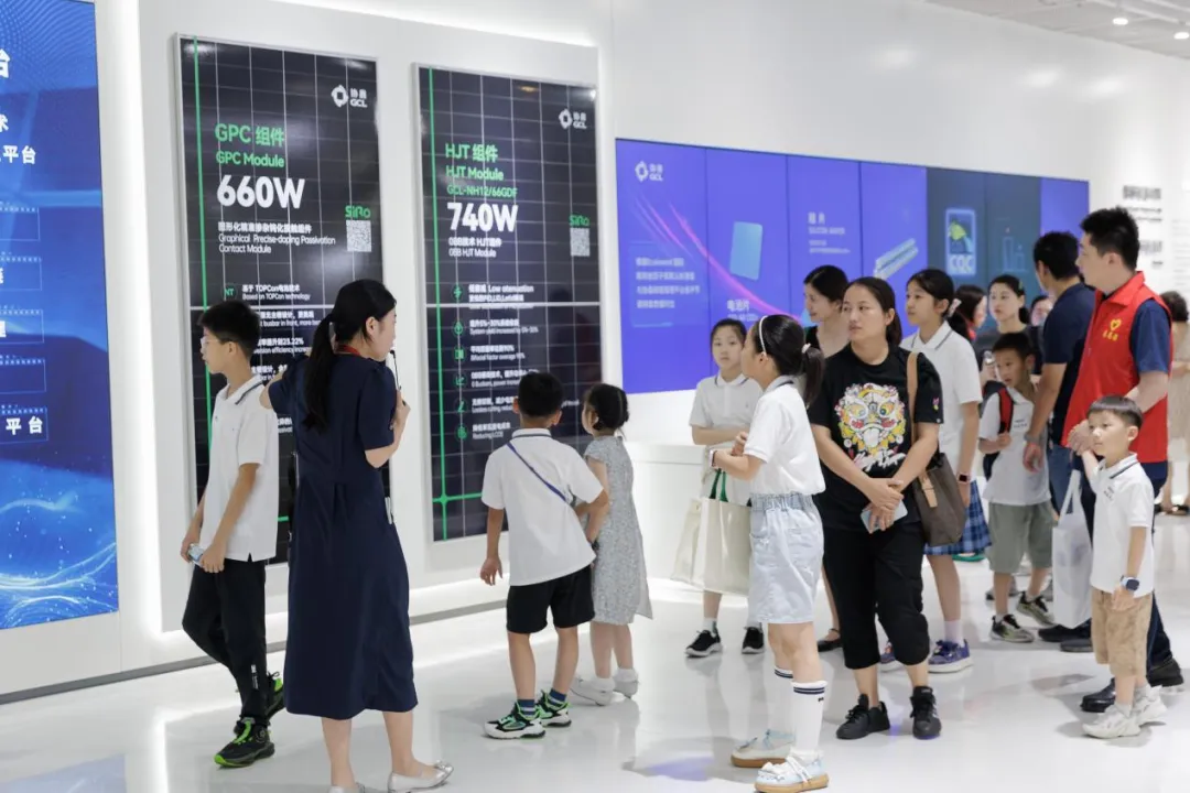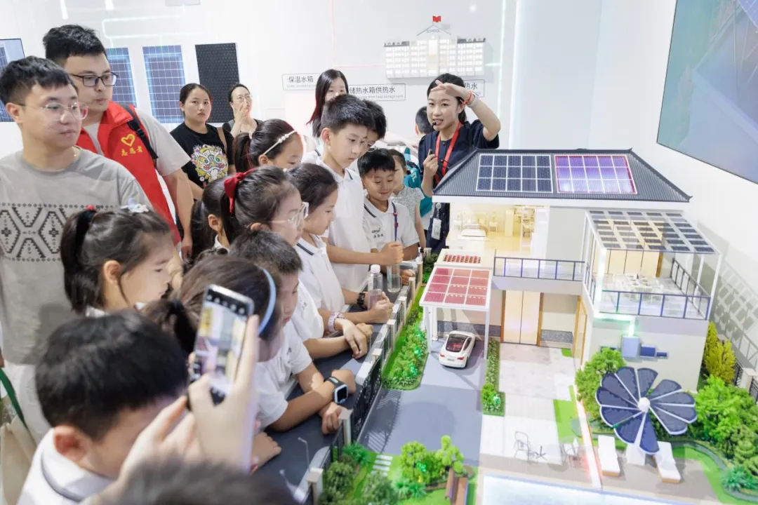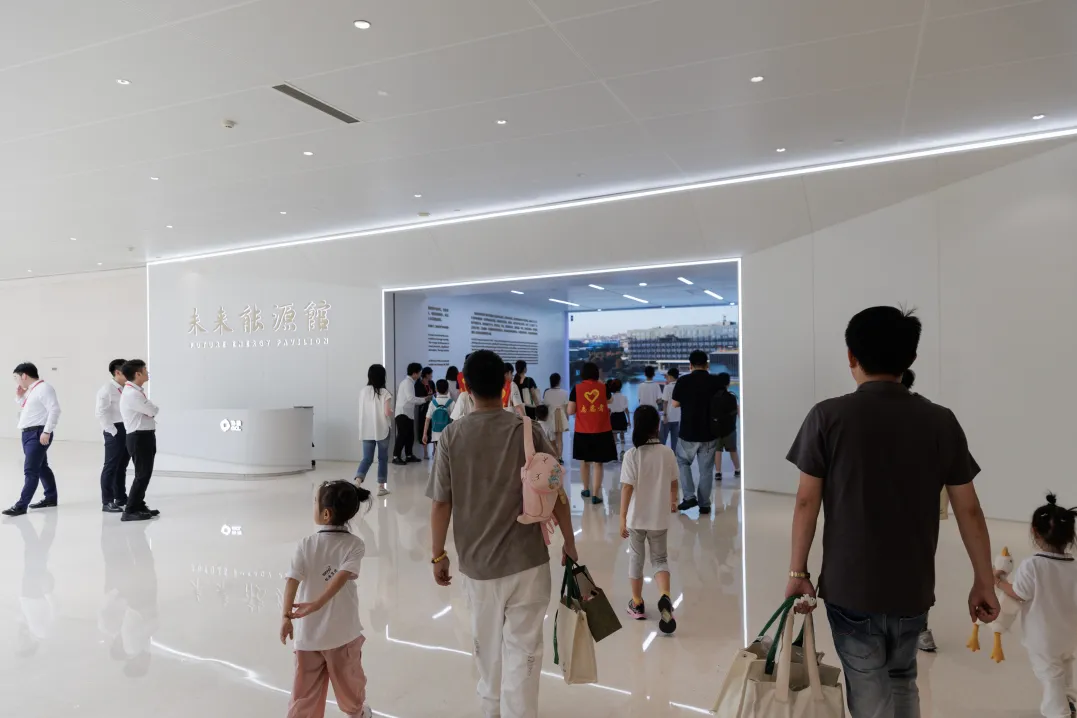下午,孩子們來(lái)到了協(xié)鑫未來(lái)能源館實(shí)地參觀能源科技變革。進(jìn)入酷似宇宙星空的創(chuàng)新廳中。先后參觀了 “綠色能源大基地”、“能源大數(shù)據(jù)運(yùn)營(yíng)平臺(tái)”和“零碳產(chǎn)業(yè)園”組成的“零碳鑫世界”,了解能源變革對(duì)人類文明發(fā)展的巨大推動(dòng)力。