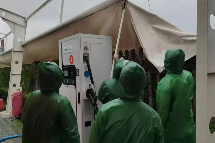 嚴格落實帶班值班制度,扎實開展安全防范工作,對運行的49座光伏電站和127個充電站全面進行巡查,加固屋面光伏組件支架、電纜蓋板、逆變器、匯流箱等設(shè)施設(shè)備,緊固螺絲、扣件、組件壓塊等安裝結(jié)構(gòu)。防臺期間對未投入運營的充電場站全部斷電封閉,并對2臺儲能電站采取雙向斷電措施。營運項目依托智能監(jiān)控平臺,全面掌握一線情況,及時發(fā)現(xiàn)兩處充電站配電箱被風吹倒,立即由專人與業(yè)主溝通對接,通力協(xié)作,斷電處理,迅速排除險情。實現(xiàn)監(jiān)控搶險應急聯(lián)動,形成安全處置合力。