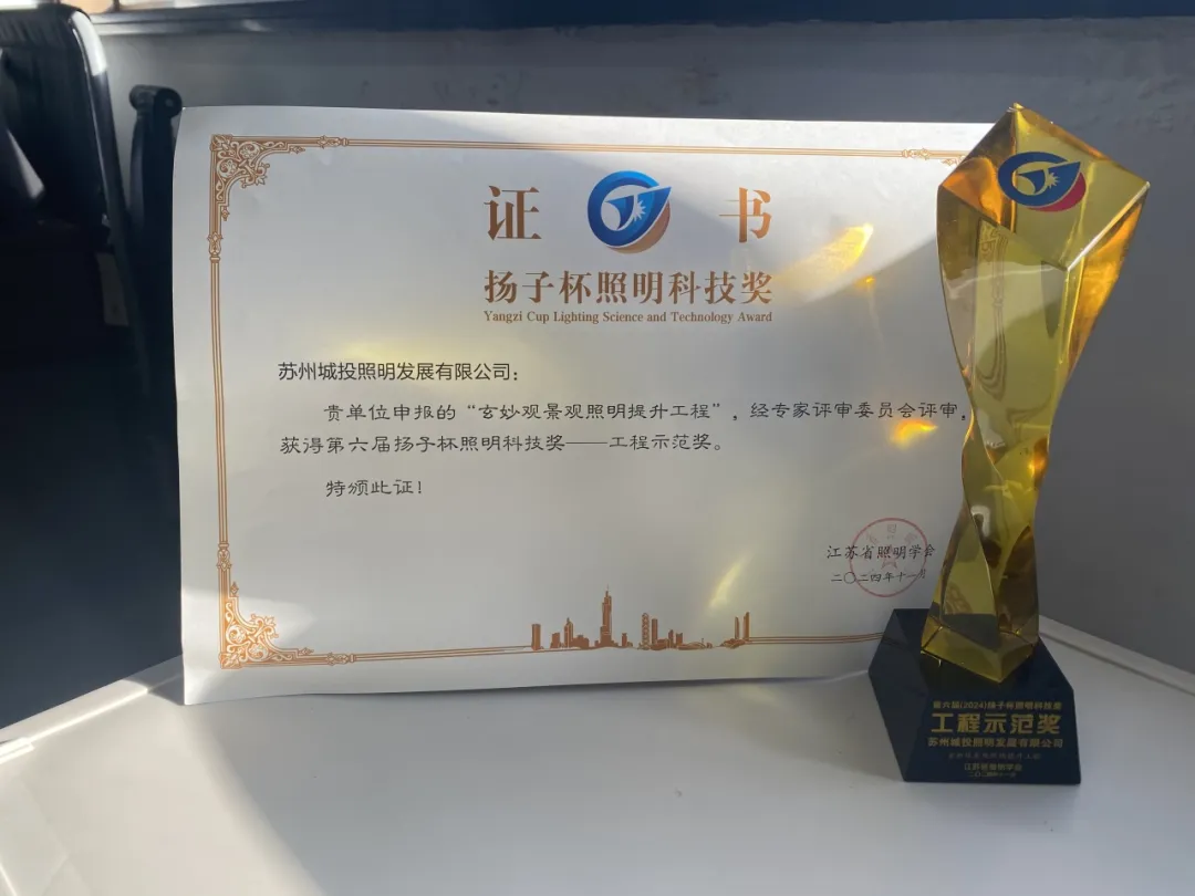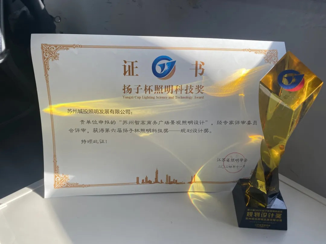 照明公司景觀設(shè)計項目“玄妙觀景觀照明提升工程”榮獲揚子杯科技照明獎——工程示范獎,“蘇州智高商務(wù)廣場景觀照明設(shè)計”榮獲揚子杯科技照明獎——規(guī)劃設(shè)計獎。