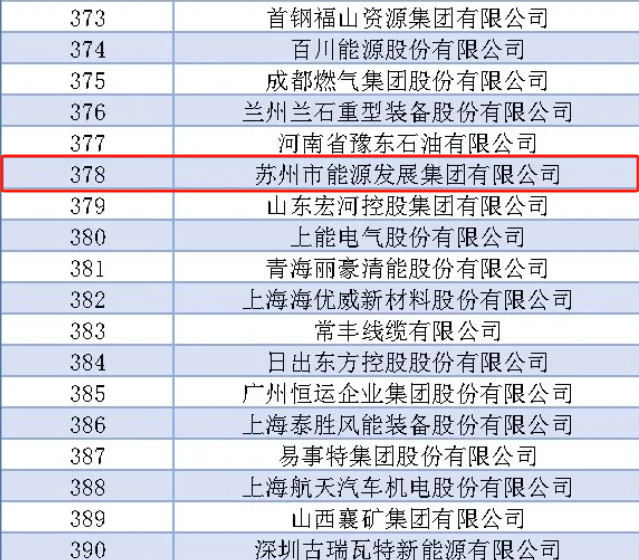 近日,2024中國(guó)能源企業(yè)(集團(tuán))500強(qiáng)榜單正式出爐,蘇州市能源發(fā)展集團(tuán)有限公司入圍,位列第378名!