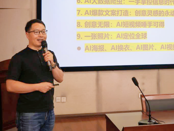 授課中,方小華圍繞人工智能基礎(chǔ)理論與發(fā)展趨勢,結(jié)合企業(yè)實際需求,重點講解了 DeepSeek 平臺本地化部署流程、知識庫搭建等核心內(nèi)容,并就提示詞撰寫、Excel 數(shù)據(jù)分析、智能文案生成等實操技能進(jìn)行現(xiàn)場指導(dǎo)。同時,針對 AI 在生成多媒體素材、打造數(shù)字分身、智能客服系統(tǒng)搭建、經(jīng)營分析自動化等業(yè)務(wù)場景的落地應(yīng)用,結(jié)合典型案例深入剖析實施路徑,并通過互動問答環(huán)節(jié)解答學(xué)員疑問。