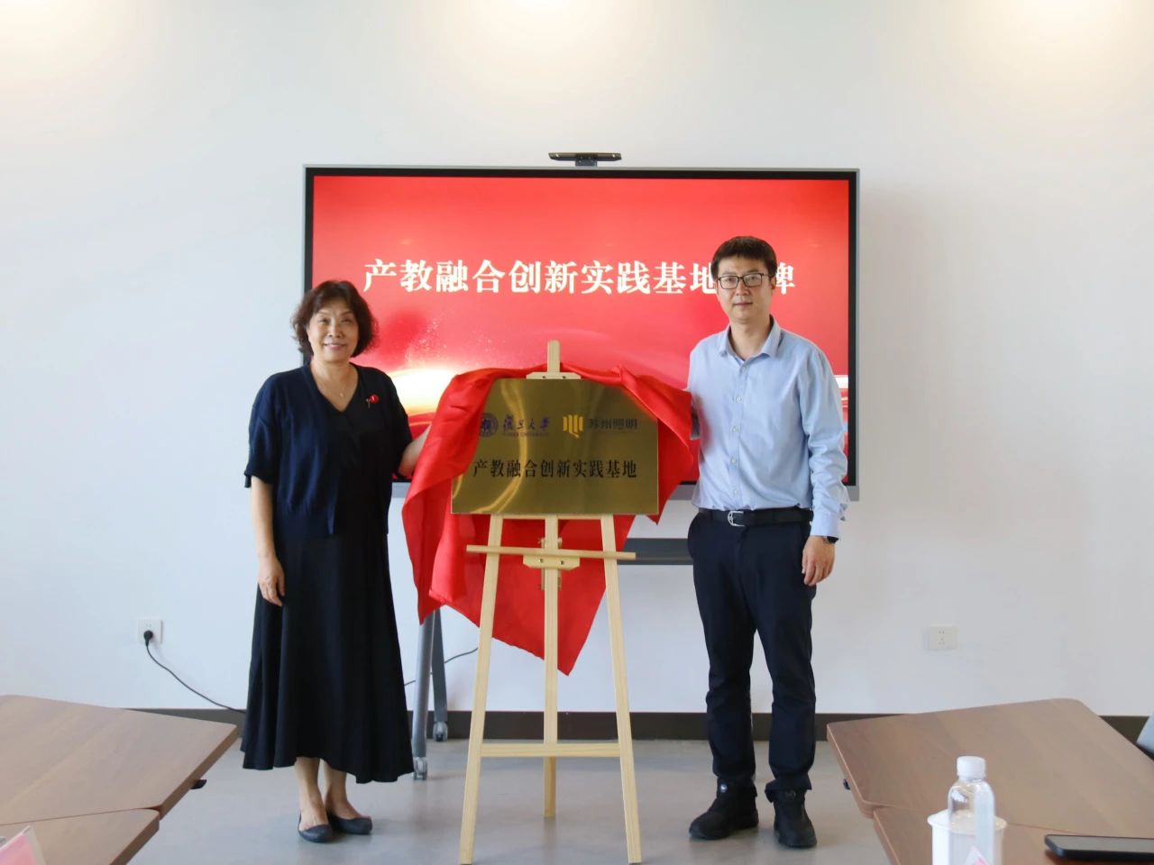 簽約環(huán)節(jié),照明公司黨總支副書記李駿良與復旦大學智能機器人與先進制造學院副院長張萬路簽署相關(guān)合作協(xié)議,照明公司黨總支書記、董事長、總經(jīng)理常曉杰與復旦大學智能機器人與先進制造創(chuàng)新學院黨委書記仇棣共同為產(chǎn)教融合創(chuàng)新實踐基地揭牌。