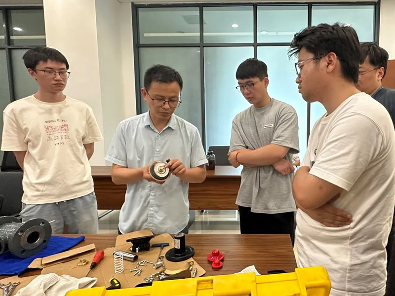A149的拆裝存在諸多技術(shù)難點,例如其結(jié)構(gòu)復(fù)雜,要求拆裝順序必須精確無誤;多個部件通過螺栓連接,在拆卸時需要保證同步進(jìn)行;眾多結(jié)構(gòu)之間存在聯(lián)動關(guān)系,拆裝時必須協(xié)調(diào)一致;還有精密部件,其保護(hù)與更換皆有嚴(yán)格規(guī)范等。在現(xiàn)場,得益于專家的悉心指導(dǎo),學(xué)員們均獲得了實操的機(jī)會。隨著黃銅殼體精準(zhǔn)地分離,內(nèi)部精密的壓力平衡迷宮呈現(xiàn)在眼前。當(dāng)主調(diào)彈簧逐步被釋放時,專家同步對雙反饋膜片組的復(fù)合聯(lián)動機(jī)制進(jìn)行解構(gòu)。