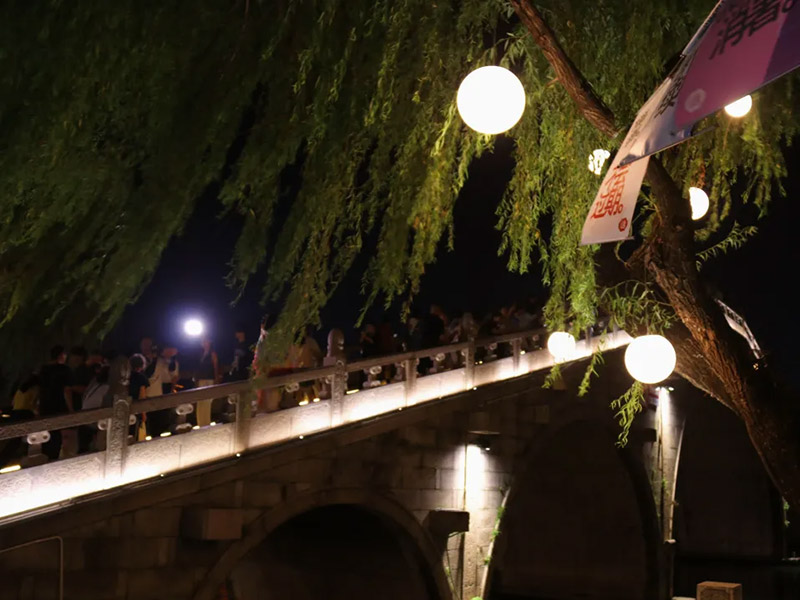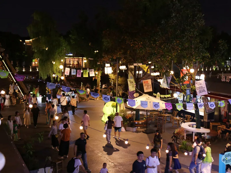 作為夜游山塘的新地標(biāo),百間樓停車(chē)場(chǎng)早已不只是車(chē)馬暫駐的中轉(zhuǎn)點(diǎn),而是一場(chǎng)光與影的沉浸式體驗(yàn)。當(dāng)停車(chē)場(chǎng)化身藝文市集,燈光不再止于照明,而是融合設(shè)計(jì)巧思與文化溫度,各類(lèi)宮燈、裝飾燈錯(cuò)落有致,或靜佇一隅、如幽蘭淡雅,或點(diǎn)綴通衢、如螢火輕躍,為市民與游客繪制一幅清涼、詩(shī)意、充滿文化氣息的夜色畫(huà)卷。