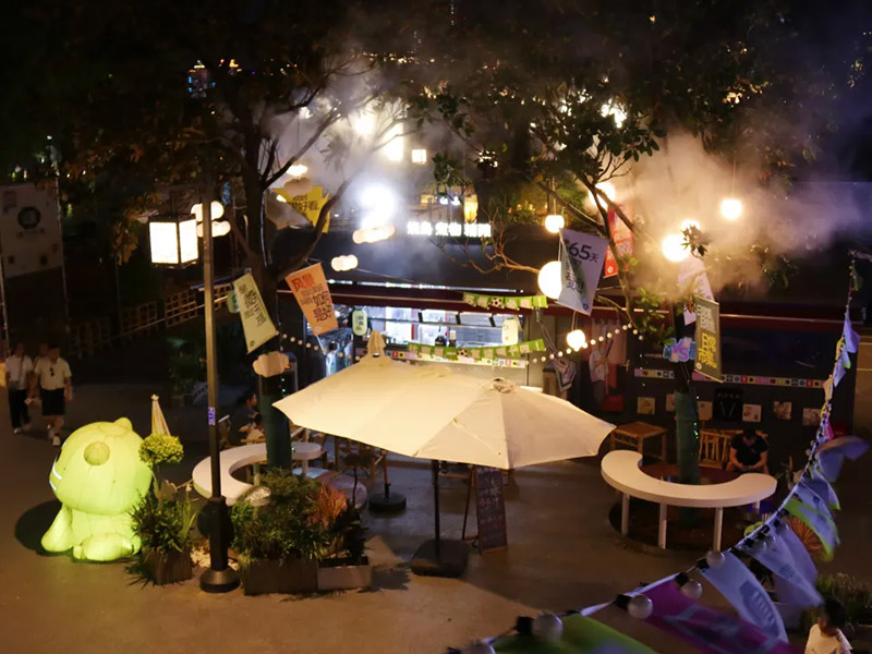 小暑節(jié)氣常有“盛夏將至”的期待,而百間樓的霧森裝置恰如其分地送來(lái)一縷清涼幻境。輕霧繚繞于樹(shù)梢之間,月球燈、云朵燈在霧中搖曳,宛如銀河傾瀉,亦似仙境初現(xiàn)。細(xì)密水霧自枝葉間裊裊溢出,為每一株綠植披上輕紗般的光幔,流動(dòng)的光影,正是這個(gè)節(jié)氣最動(dòng)人的詩(shī)意表達(dá)。