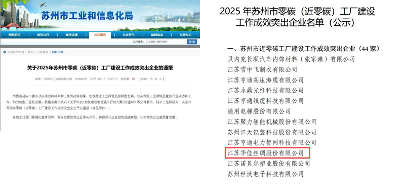 近日,從蘇州市工信局傳來捷報,在能源集團全資子公司蘇州能源科技發(fā)展有限公司的全流程、專業(yè)化服務(wù)下,江蘇華佳絲綢股份有限公司成功入選2025年蘇州市零碳(近零碳)工廠建設(shè)工作成效突出企業(yè)。