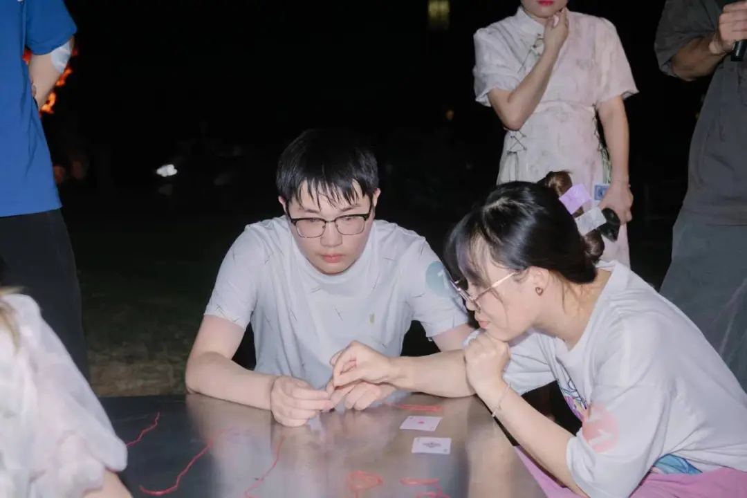 活動現(xiàn)場,大家通過“破冰”環(huán)節(jié)認(rèn)識彼此,增進了解。隨后,活動特邀嘉賓點燃篝火,點亮了立秋的夜空,也點燃了在場所有人的激情。在互動游戲環(huán)節(jié),大家分組進行了多種有趣的挑戰(zhàn),包括“九宮格三子棋”“穿針乞巧”“擊鼓傳花”“飛花令”等。整個過程鍛煉了青年們的團隊協(xié)作能力和反應(yīng)速度,讓他們在輕松愉快的氛圍中增進了信任。